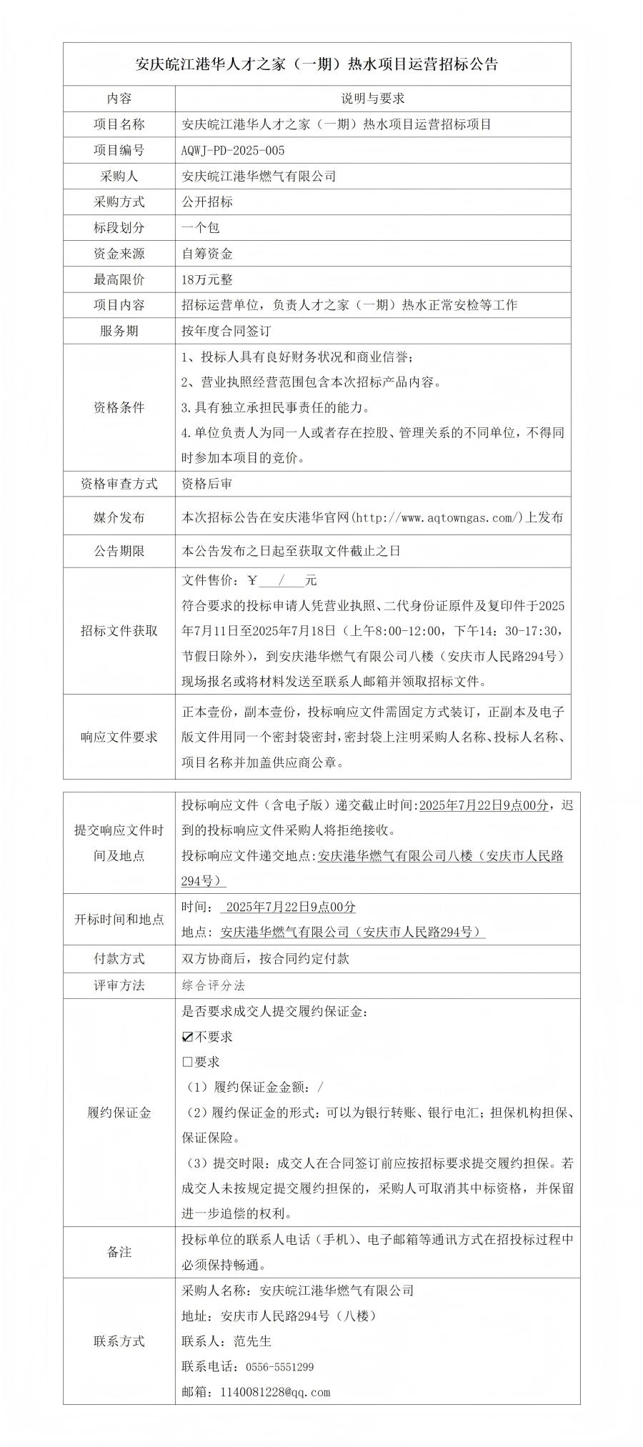 安慶皖江港華人才之家(一期)熱水項(xiàng)目運(yùn)營招標(biāo)公告