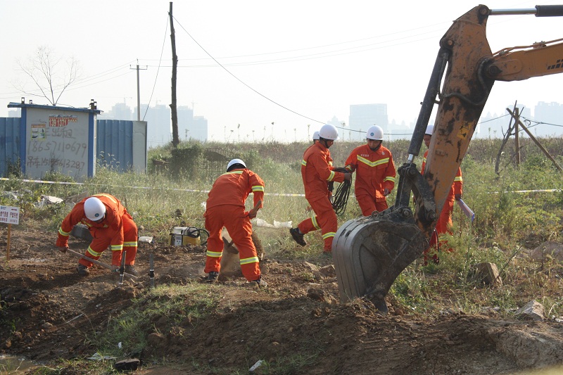 近年來(lái),隨著城市基礎(chǔ)設(shè)施及老舊小區(qū)改造工作不斷加快,工程建設(shè)對(duì)地下天然氣管網(wǎng)的安全運(yùn)行帶來(lái)的威脅亦不斷加大?,F(xiàn)場(chǎng)模擬輝煌路中壓A級(jí)PE160燃?xì)夤艿辣坏谌绞┕挝黄茐模矐c港華維搶修中心在接到搶險(xiǎn)指令后,迅速派出專業(yè)搶險(xiǎn)隊(duì)伍于30分鐘內(nèi)趕到事故現(xiàn)場(chǎng),并有條不紊地開展事故現(xiàn)場(chǎng)控制、疏散警戒、現(xiàn)場(chǎng)信息傳遞、事故逐級(jí)報(bào)告、消防聯(lián)動(dòng)配合、搶險(xiǎn)方案制定、儀器裝備操作、停氣復(fù)供、事故現(xiàn)場(chǎng)調(diào)查等程序,通過(guò)多部門配合,最終成功控制險(xiǎn)情并修復(fù)了受損管道,恢復(fù)正常供氣。