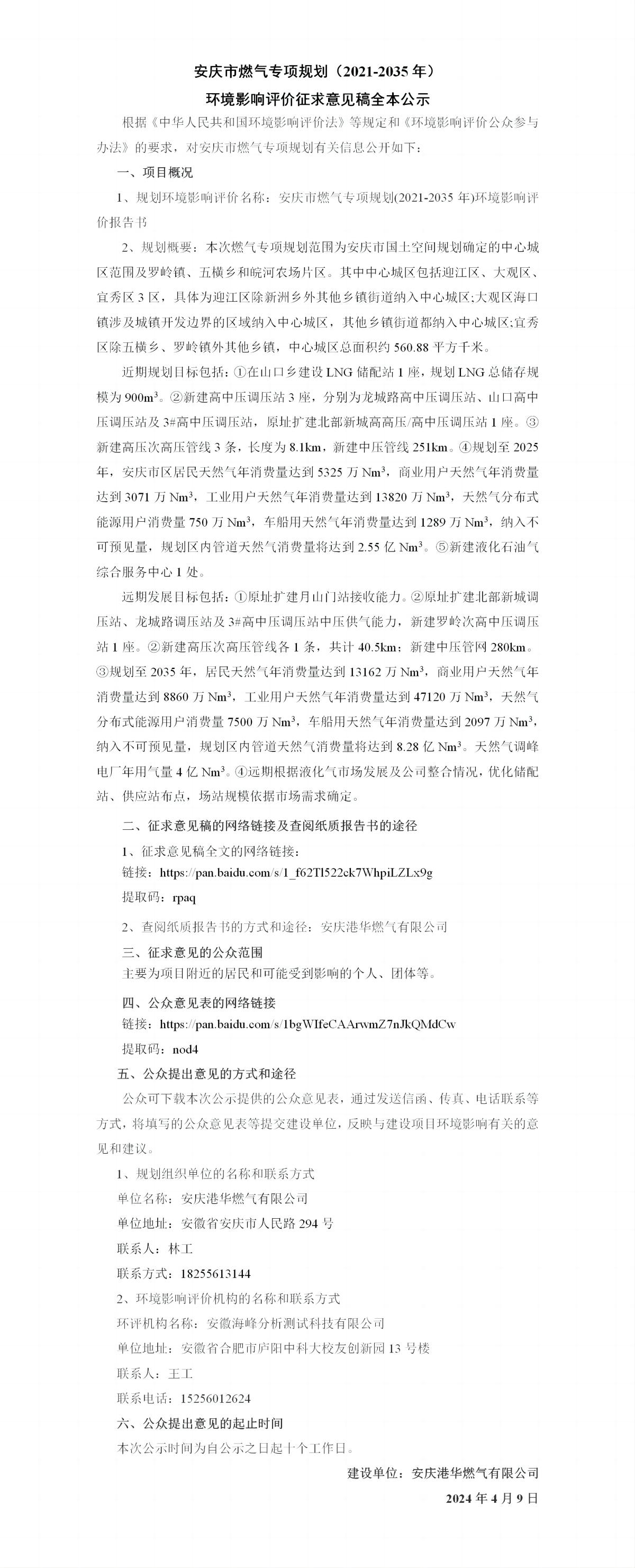 安慶市燃?xì)鈱m?xiàng)規(guī)劃(2021-2035年)環(huán)境影響評(píng)價(jià)征求意見稿全本公示
