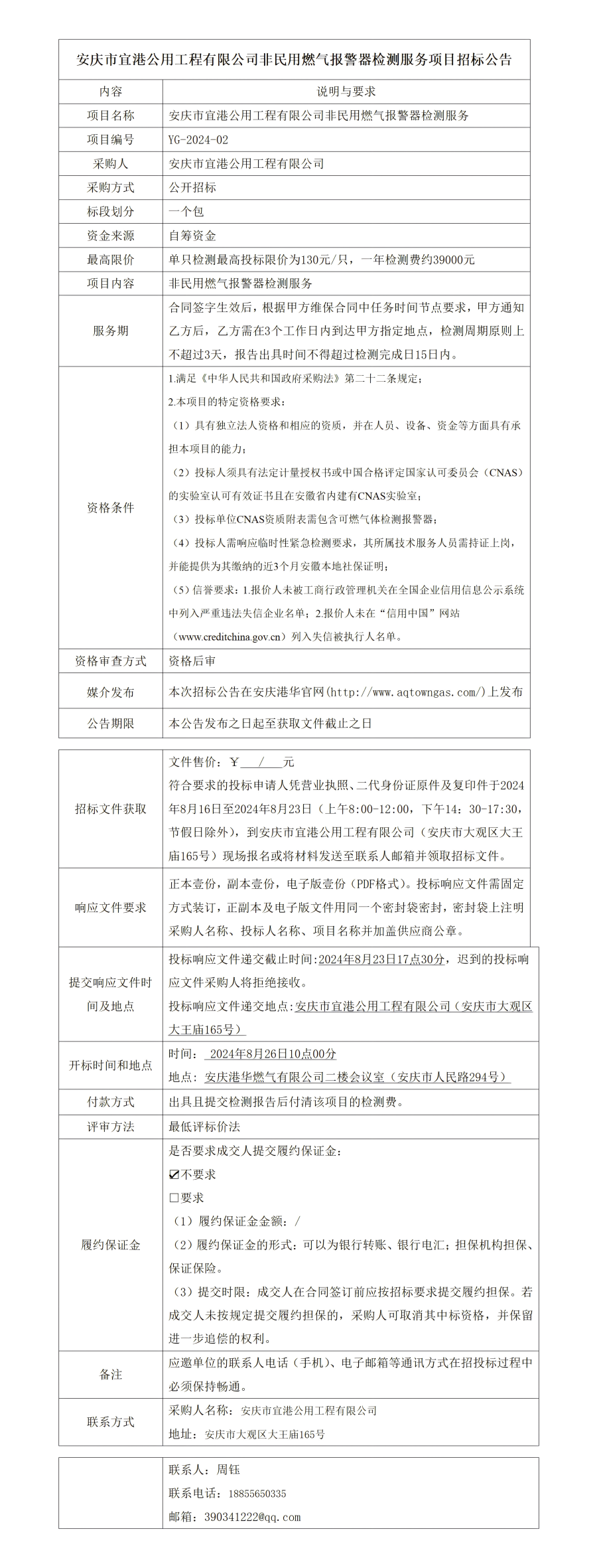安慶市宜港公用工程有限公司非民用燃?xì)鈭?bào)警器檢測服務(wù)項(xiàng)目招標(biāo)公告