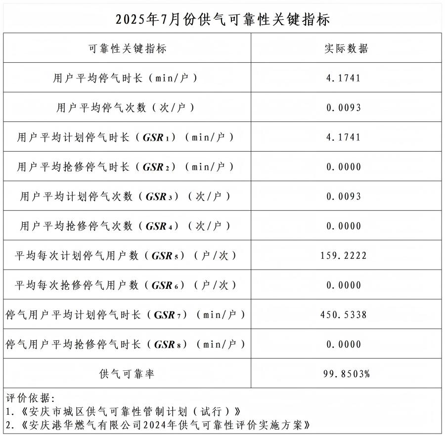 上一篇 : 2025年6月份供氣可靠性關(guān)鍵指標(biāo)