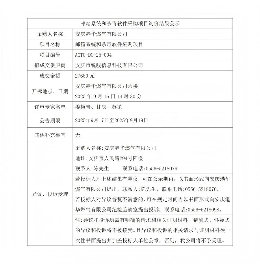 郵箱系統(tǒng)和殺毒軟件采購(gòu)項(xiàng)目詢價(jià)結(jié)果公示